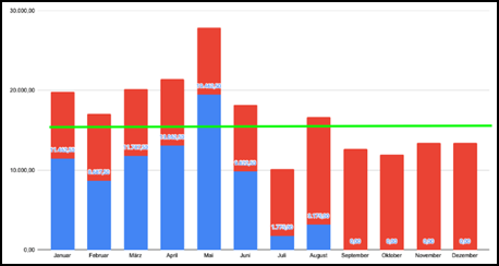 I know how to make stacked bar chart in Milestones Professional, but I am having trouble to add a line in the same chart as below. Is this possible in Milestones Professional? Thanks.